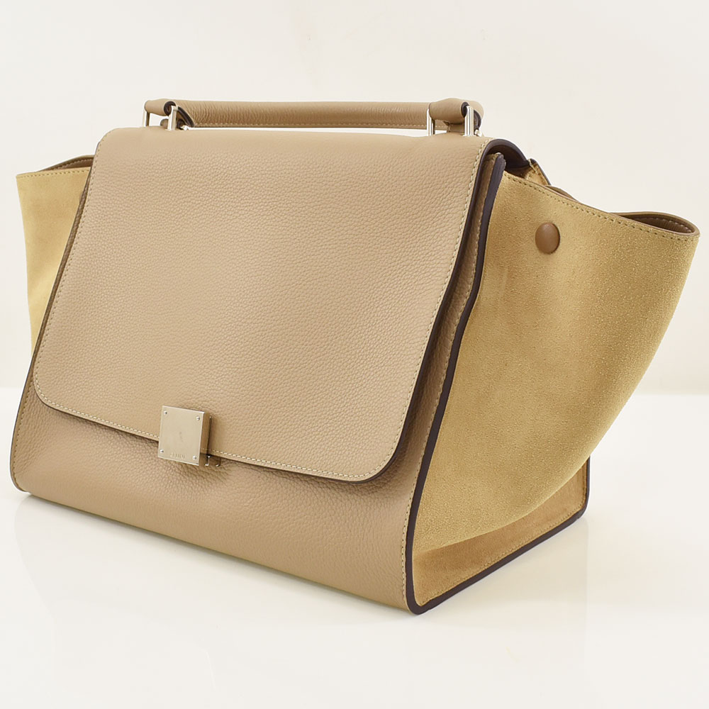 ABOUT CONDITION 外側 小キズ、薄汚れ、スレ、シワ、あまり使用感は感じない 内側 小キズ、薄汚れ、スレ、シワ、線キズ、あまり使用感は感じない 金具 小キズ、スレ、くすみ ショルダーストラップ 型くずれ、変形 形状 型崩れ、変形している ABOUT SPEC ブランド CELINE / セリーヌ 型番 169543 色 ベージュ x シルバー金具 素材 レザー/スウェード サイズ W約48cm(上部) 約30cm(下部) x H約24.5cm x D約18cm ハンドル:約36cmショルダー:約77cm ※調節不可 仕様 外側: ファスナーポケット x 1内側: オープンポケット x 2 付属品 保存袋、ショルダーストラップ キーワード トラペーズ ミディアム 2wayショルダーバッグ 女性 人気 通勤 通学 美品 大容量 グレージュ系 ハンドバッグ レディース R20E11G21T01 [cacabbcb]
